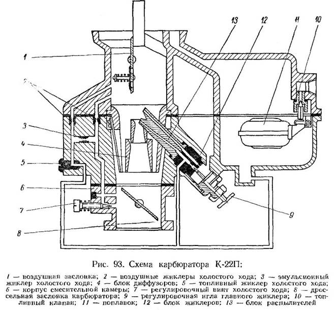 Система холостого хода карбюратора также не отличается от систем холостого хода других модификаций карбюратора К-22.