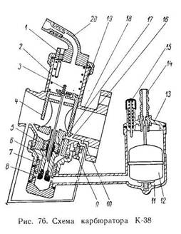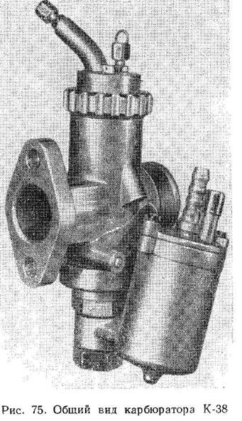 Карбюратор К-38 золотникового типа с небалансированной поплавковой камерой.