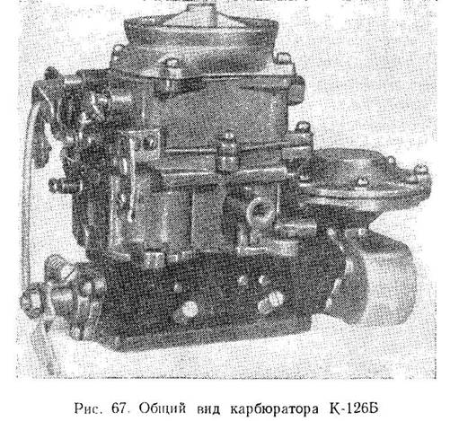 Общий вид карбюратора представлен на рис. 67, а схема его — на рис. 68.
